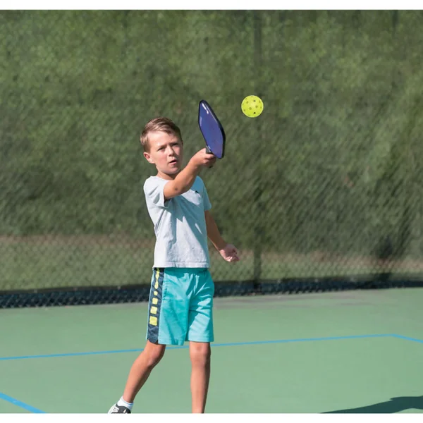 Vous cherchez un kit de démarrage pour jouer au pickleball ? Celui-ci contient tout ce dont vous avez besoin pour vous lancer dans le jeu. Il comprend deux pagaies en bois avec des poignées antidérapantes, deux balles de pickleball et un sac de transport à bandoulière, ce qui est parfait pour les débutants. Grâce aux motifs accrocheurs des pagaies, les enfants se sentiront en confiance et prêts à jouer !
