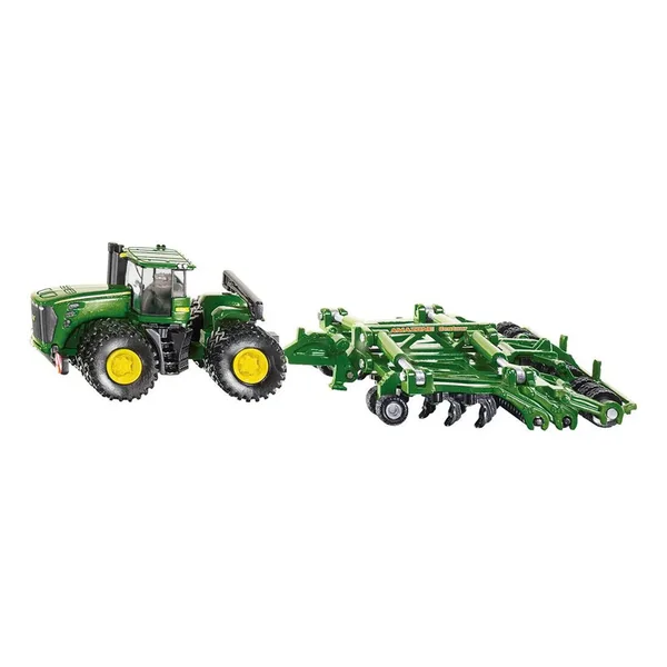 L’énorme tracteur articulé John Deere 9630 est jusqu’à présent le plus grand modèle de tracteur à l’échelle 1:87. Ce modèle ultrapuissant est articulé par un bras situé au milieu de la machine. Combiné à l’énorme cultivateur de la marque Amazone, le tracteur est livré avec des pneus jumelés. Aucune ferme de petite échelle ne doit être privée de cet imposant attelage. Ces modèles combinés sont essentiellement en métal. Les deux éléments de cultivateur de l’Amazone Centaur peuvent être relevés pour le transport routier.