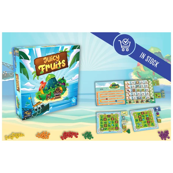 À chaque partie, Juicy Fruits propose de nouveaux casse-têtes sur la façon de déplacer efficacement vos jetons et d’équilibrer le déblaiement de votre île avec l’acquisition de commerces. Le jeu comprend également un mode additionnel « fabrique de jus » ainsi que quatre variantes pour jouer en solo.