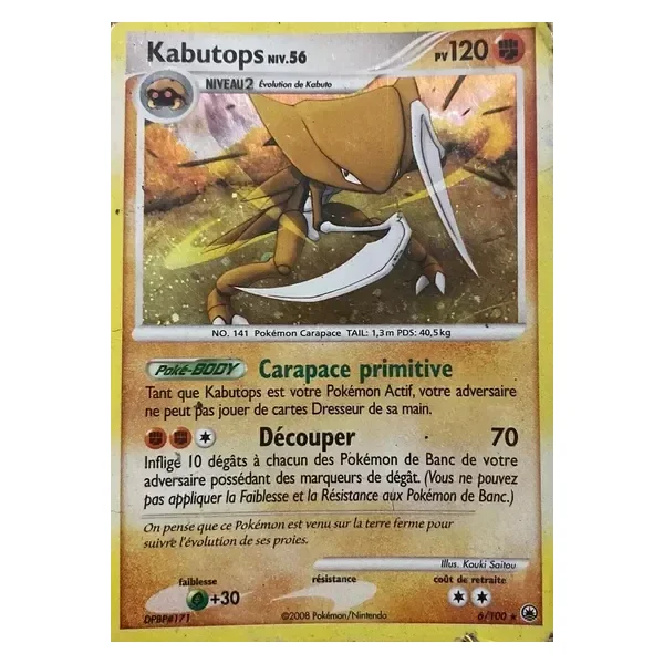 Découvrez Kabutops (md006), une carte Pokémon de l’extension Aube Majestueuse, provenant du bloc Diamant & Perle. Idéale pour compléter votre collection, cette carte Holo Rare plaira autant aux collectionneurs qu’aux joueurs.