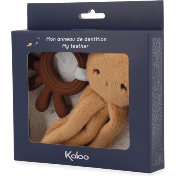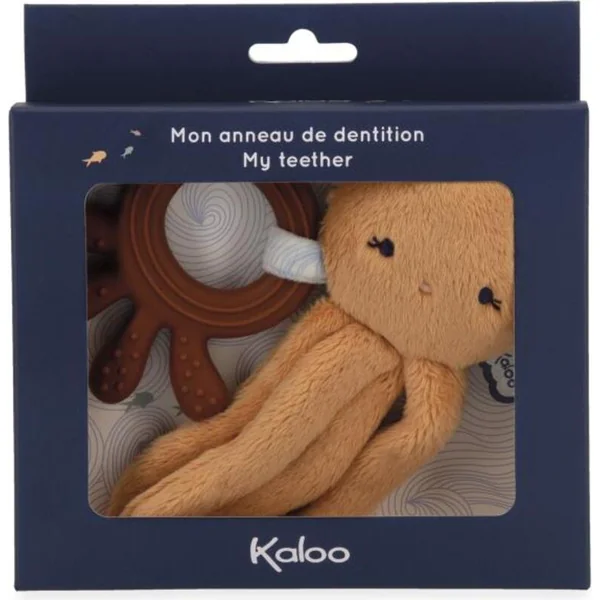 Kaloo Petit Calme Anneau de dentition en caoutchouc naturel Octopus est un jouet pour enfants fabriqué en caoutchouc naturel, destiné aux nourrissons pendant la période de la dentition.
