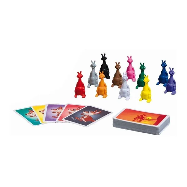 Un jeu de cartes rapide et amusant de Reiner Knizia, permettant de manipuler des petits kangourous colorés.