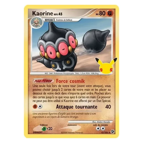 Découvrez Kaorine (celGE 15), une carte Pokémon de l’extension Célébrations, provenant du bloc Épée & Bouclier. Idéale pour compléter votre collection, cette carte Rare plaira autant aux collectionneurs qu’aux joueurs.