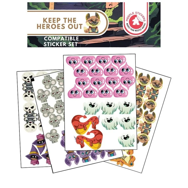 Dans Keep the Heroes Out!, vous incarnez les monstres qui protègent leurs trésors durement gagnés contre les héros envahisseurs qui tentent de les piller. Pour rendre le jeu de rôle encore plus immersif, rien de tel que de décorer vos meeples en bois ordinaires avec nos incroyables autocollants de haute qualité, conçus pour s’adapter parfaitement aux meeples des monstres.