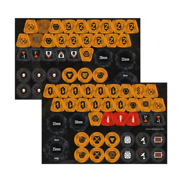 Dans la boîte, vous trouverez également une planche de 39 pions double face des Récupérateurs trekogs, afin de garder facilement un œil sur votre équipement et les effets en cours dans le feu de la bataille.