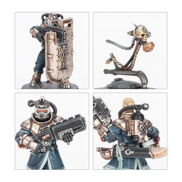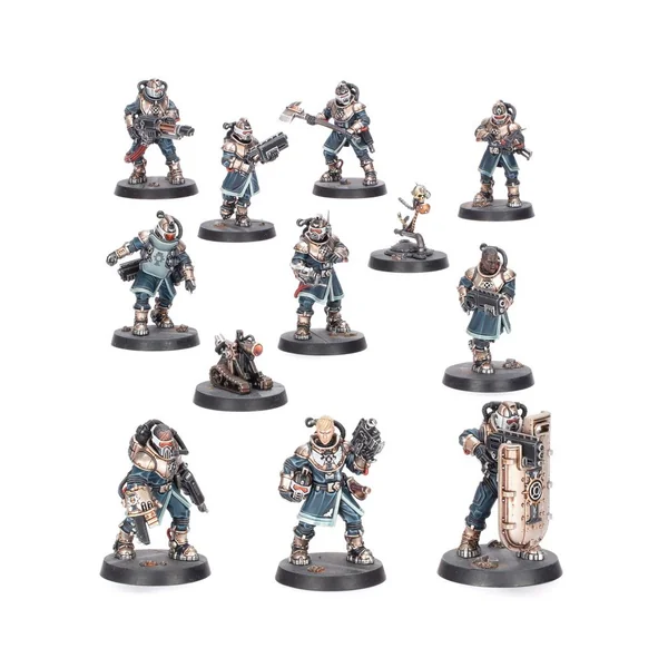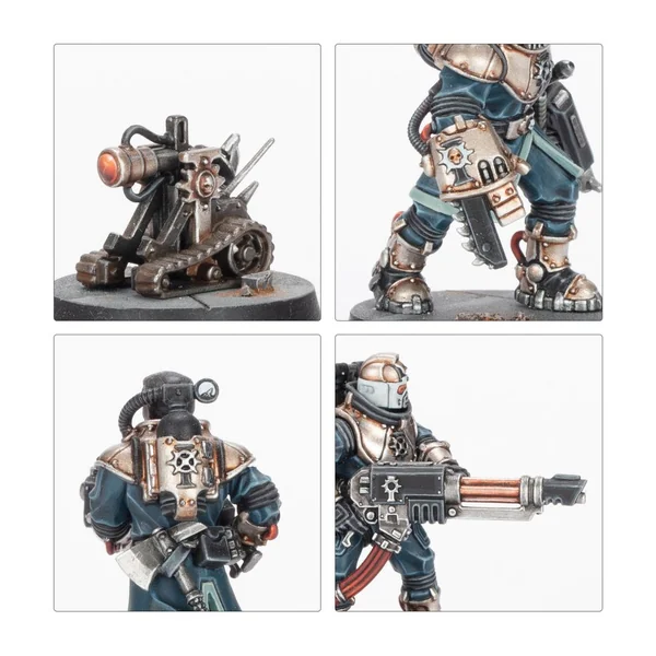 Ce kit en plastique permet d’assembler une escouade de 10 Sapeurs de la Marine Impériale, accompagnés de deux soutiens robotiques: l’unité C.H.A.T. de reconnaissance et le Spectrocrâne explosif. Ces figurines peuvent être utilisées en tant qu’agents dans les parties de Kill Team ou être incorporées au sein des armées d’Agents de l’Imperium dans les parties de Warhammer 40,000. Le kit contient nombre de têtes interchangeables et d’accessoires pour personnaliser votre kill team, ainsi que des éléments pour assembler des spécialistes, comme le talentueux Astrobrouilleur, le Grenadier lourdement protégé, ou encore l’Hoplite et son bouclier.