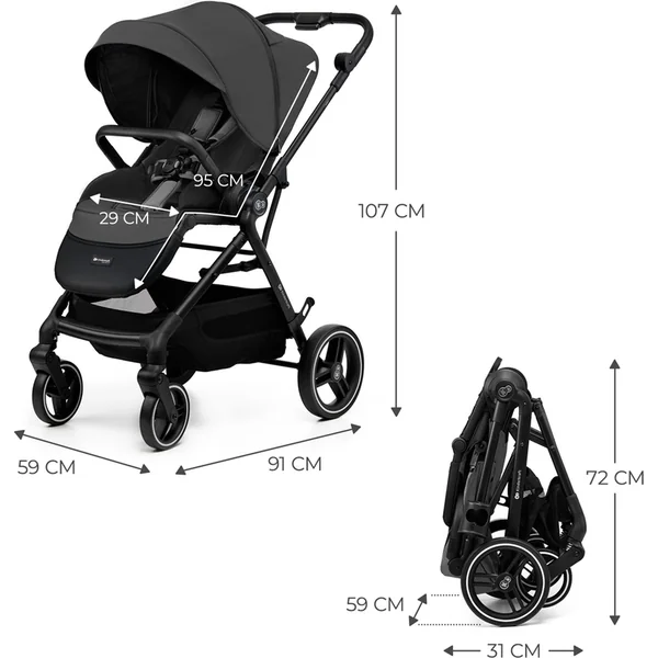 - Dimensions de la poussette dépliée : 91 L x 59 l x 107 H