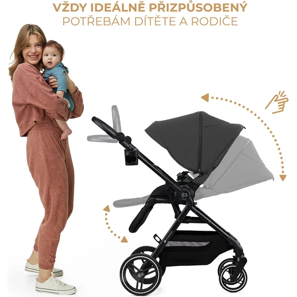 De plus, la poussette YOXI est également facile à enfiler – la poignée réglable permet d’adapter la poussette à votre taille, ce qui facilite sa conduite.