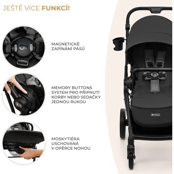 Le SYSTÈME DE BOUTONS MÉMOIRE permet de détacher rapidement la poussette du cadre d’une seule main. De plus, la poussette est équipée d’une boucle magnétique pour les ceintures, ce qui facilite l’attache de l’enfant dans le siège de la poussette. YOXI est également livré avec des adaptateurs universels qui permettent de créer un SYSTÈME DE VOYAGE si vous avez un siège auto.