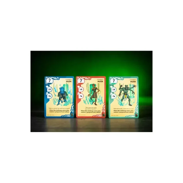 Callous’ Lab est composé de quatre cartes de défi, avec Callous lui-même au milieu. Lorsqu’un défi est vaincu, un autre prend sa place, avec 57 cartes défi au total. Lorsque vous faites face aux défis du Puits, vous pouvez jouer une carte de compétence de votre main uniquement lorsqu’elle correspond à la couleur de la carte de défi. Par exemple, si vous faites face à une carte de défi rouge, vous ne pouvez jouer qu’une carte de compétence rouge. . Certaines cartes ont deux couleurs et d’autres sont blanches, c’est-à-dire sauvages. Si la carte que vous jouez ne réussit pas le défi, vous pourrez y ajouter un peu de progression et tenter à nouveau, même si vous pourriez subir une pénalité pour cela.
