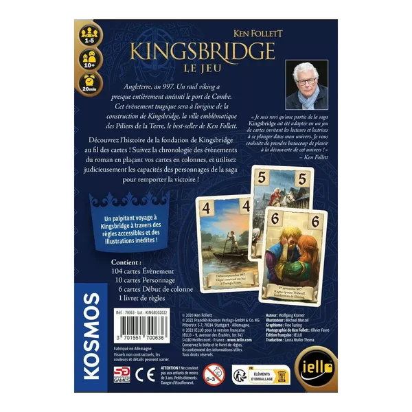 Découvrez l’histoire de la fondation de Kingsbridge au fil des cartes ! Suivez la chronologie des évènements du roman en plaçant vos cartes en colonnes, et utilisez judicieusement les capacités des personnages de la saga pour remporter la victoire !