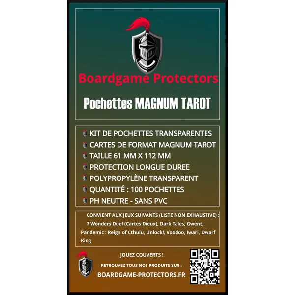 Entreprise française, nous utilisons exclusivement les sleeves de haute qualité Boardgame Protectors conçues spécialement pour vous!