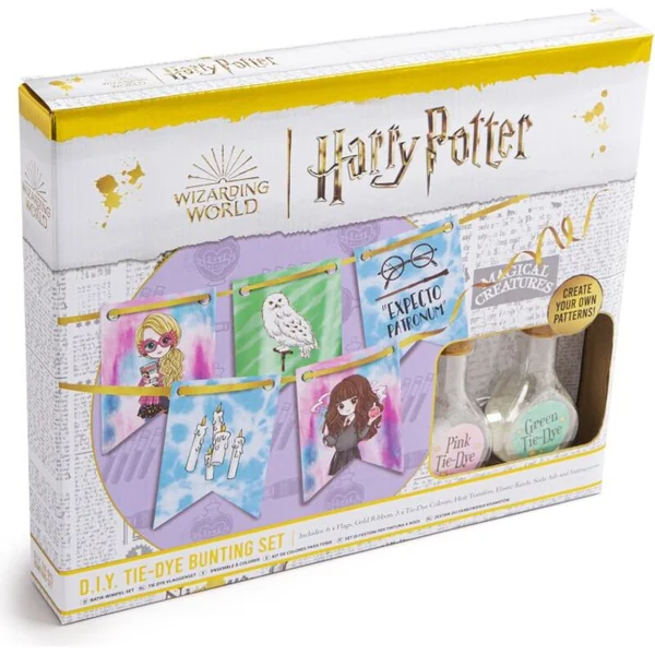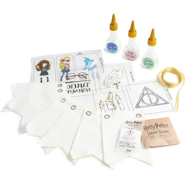 Kit créatif pour fabriquer des drapeaux tie-dye sur le thème de Harry Potter.