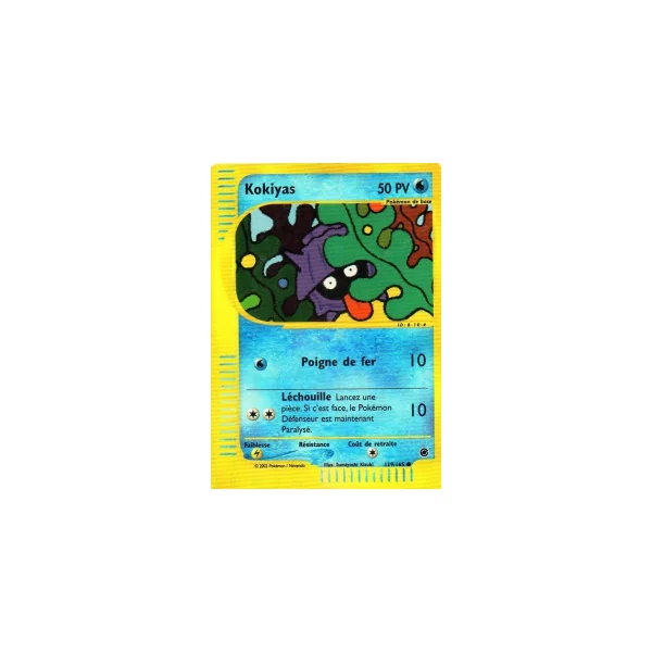 Découvrez Kokiyas (ex129), une carte Pokémon de l’extension Expedition, provenant du bloc Wizards. Idéale pour compléter votre collection, cette carte Commune plaira autant aux collectionneurs qu’aux joueurs.