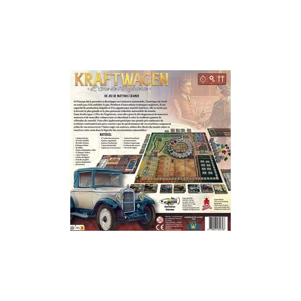 Kraftwagen : Age of Engineering est un jeu de société expert de 2 à 4 joueurs, dès 13 ans pour des parties d’environ 90 minutes.