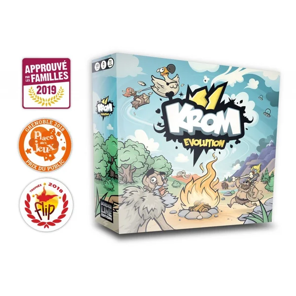 Ce jeu aux mécanismes simples mais complets permet à 2 à 6 joueurs, qu’ils soient primitifs ou civilisés (à partir de 7 ans tout de même), de s’affronter pour devenir le nouveau chef des Kroms.