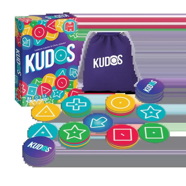 Kudos est un jeu de société jouable de 2 à 6 joueurs, dès 8 ans pour des parties d’environ 10 minutes, édité par Jumbo.
