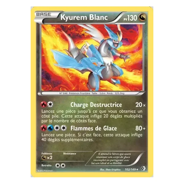 Découvrez Kyurem Blanc (bcr102), une carte Pokémon de l’extension Frontières Franchies, provenant du bloc Noir & Blanc. Idéale pour compléter votre collection, cette carte Rare plaira autant aux collectionneurs qu’aux joueurs.