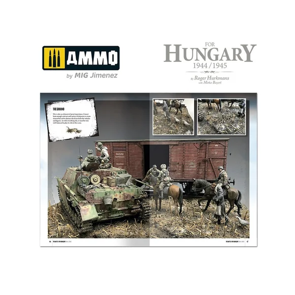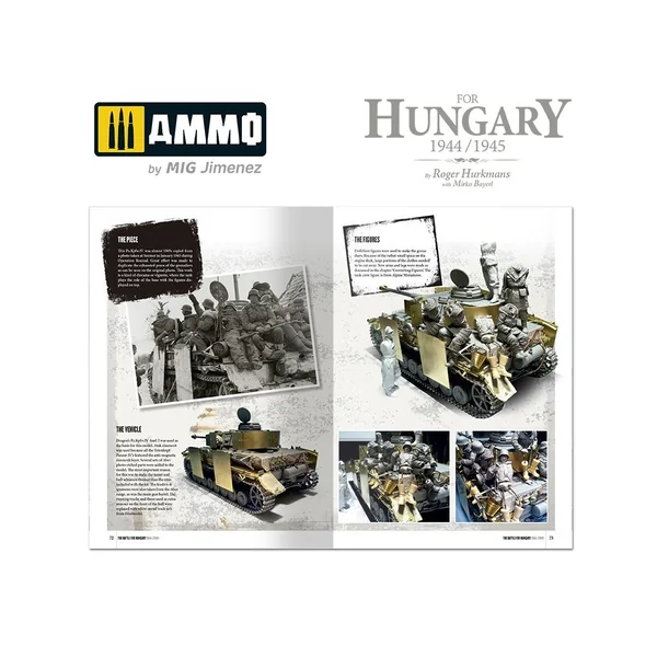 Roger Hurkmans et Mirko Bayerl présentent un nouveau concept avec ce livre, qui combine la modélisation à l’échelle avec l’histoire, les combats sauvages qui ont eu lieu en Hongrie pendant les dernières étapes de la Seconde Guerre mondiale. Chaque chapitre décrit un épisode spécifique de cette campagne à l’aide d’un diorama, ce qui permet de transmettre au spectateur l’ambiance, l’atmosphère et les conditions spécifiques entourant les opérations d’une manière claire et facile à comprendre ; le tout étayé par les recherches historiques les plus rigoureuses et accompagné de photographies, de cartes et d’illustrations de référence de grande qualité.
