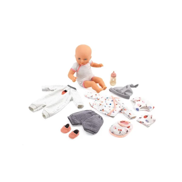 • 1 poupon de 32 cm (corps souple en tissu et tête, bras et jambes en vinyle)
