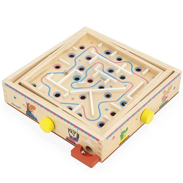 Parfait pour développer la concentration, la coordination, l’adresse, mais aussi la patience des petits ! Car il faudra persévérer pour devenir un grand maître du labyrinthe : de quoi rester occupé pendant de longs moments. Amusant et ingénieux, ce jeu d’adresse est orné d’illustrations festives sur le thème de la fête foraine. Tout autour du plateau, des animaux rigolos s’éclatent aux auto-tamponneuses, tandis que l’intérieur du parcours de bille nous fait plutôt penser au Palais des glaces.