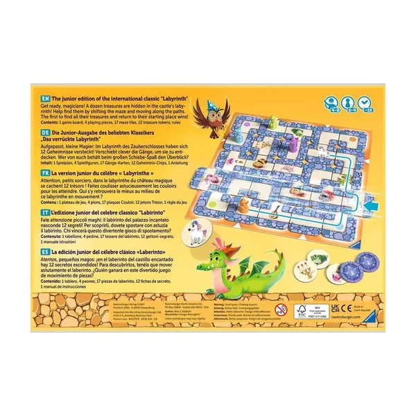 Labyrinthe Junior est un jeu de société jouable de 2 à 4 joueurs, dès 4 ans pour des parties d’environ 15 minutes, édité par Ravensburger.