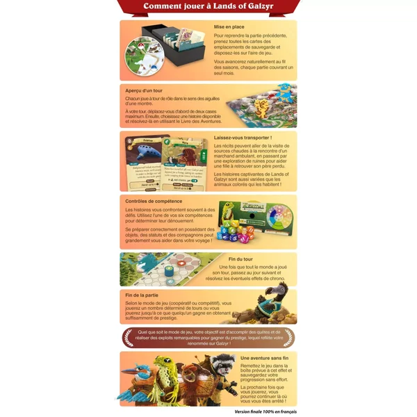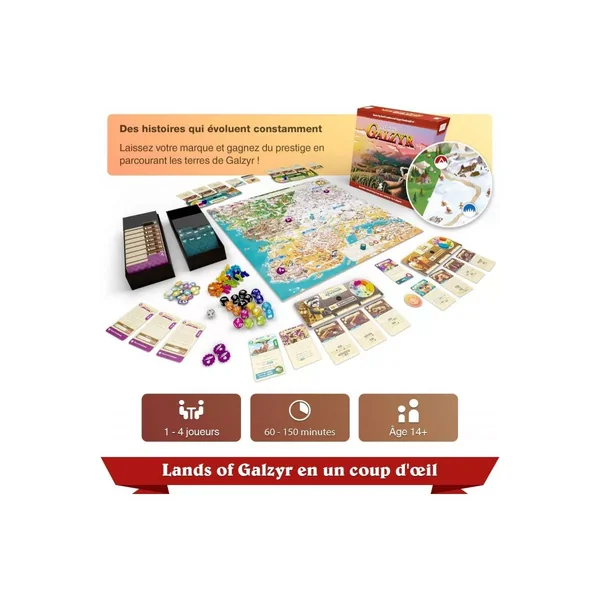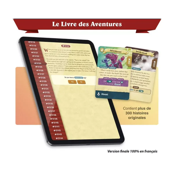 Le jeu peut accueillir de 1 à 4 joueurs et peut être joué aussi bien en mode compétitif qu’en mode coopératif. Avec près de 400 histoires qui se divisent, 480 cartes et 17 dés personnalisés, vous vivrez une expérience inoubliable.