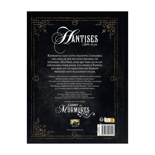 Hantises – Aides de jeu est le complément idéal des recueils de scénarios Hantises, premier volume et Hantises, second volume.