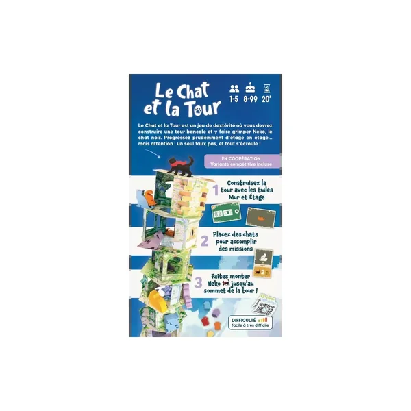 Le Chat et la Tour est un jeu de société familial jouable de 1 à 5 joueurs, dès 8 ans pour des parties d’environ 20 minutes, édité par Unfriendly Games.