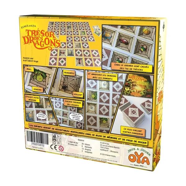 Le trésor des Dragons est un jeu de société pour enfants jouable de 2 à 5 joueurs, dès 4 ans pour des parties d’environ 14 minutes, édité par Oya.
