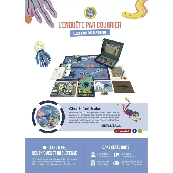 L’Enquête par Courrier – Les Fonds Marins est un jeu d’enquête, édité par En Cavale, prenant place en mer à faire en solo ou en duo à partir de 7 ans. Une enquête d’environ 120 minutes.
