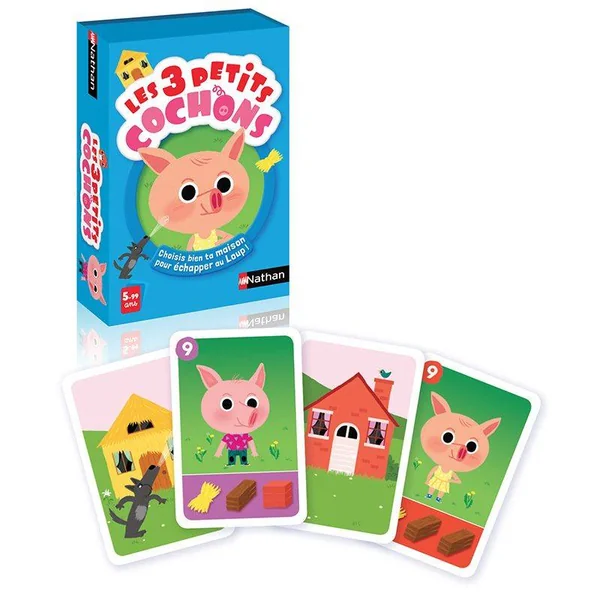 Les 3 petits cochons de Nathan est un jeu de cartes de 2 à 4 joueurs pour les enfants à partir de 5 ans.