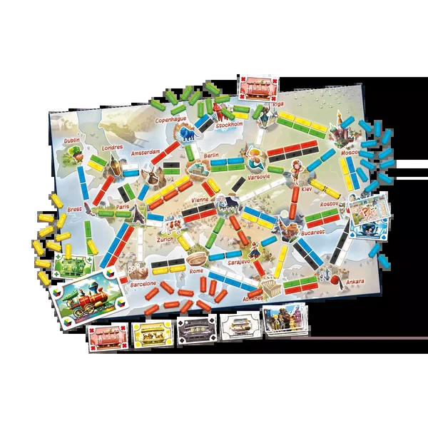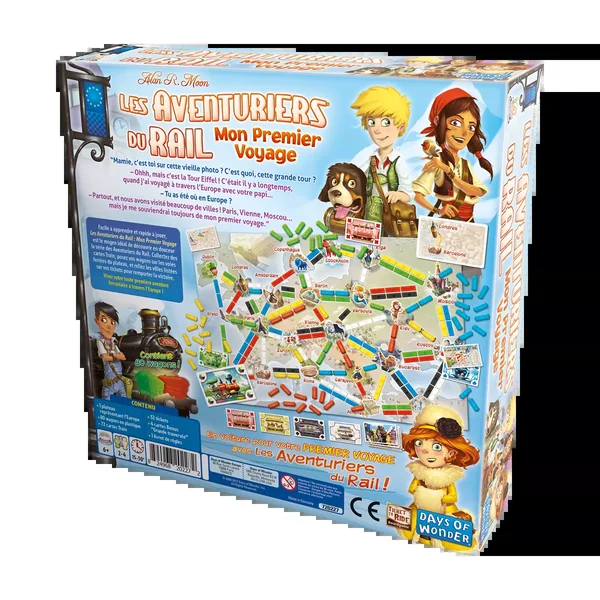 Un jeu à part entière pour initier les joueurs (dès 6 ans) au succès du jeu ferroviaire ! Grâce à des règles adaptées, les enfants pourront se joindre à leurs parents dans la conquête du rail et s’accaparer les chemins de fer européens. Collectez des cartes Wagon et reliez les villes listées sur vos cartes Destination pour remporter la victoire. À vous de vivre votre toute première aventure ferroviaire à travers l’Europe !