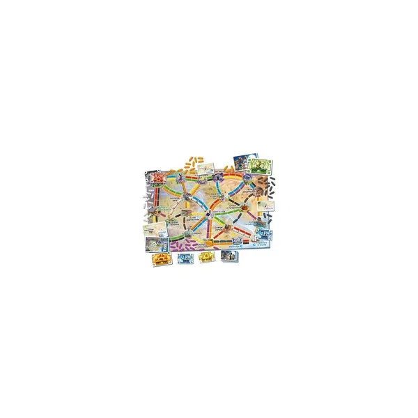 Chaque joueur commence avec quatre cartes flottantes colorées en main et deux tickets ; chaque ticket indique deux emplacements, et vous essayez de connecter ces deux emplacements avec un chemin contigu de vos trains afin de compléter le ticket.