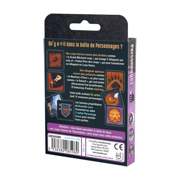 Les loups-garous de Thiercelieux : Personnages – Extension : Du « Grand Méchant Loup » qui mange deux villageois par nuit au « Renard » qui piste les loups-garous, ces nouveaux personnages vont changer la donne à Thiercelieux !