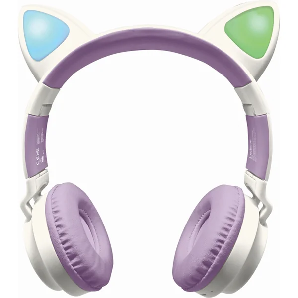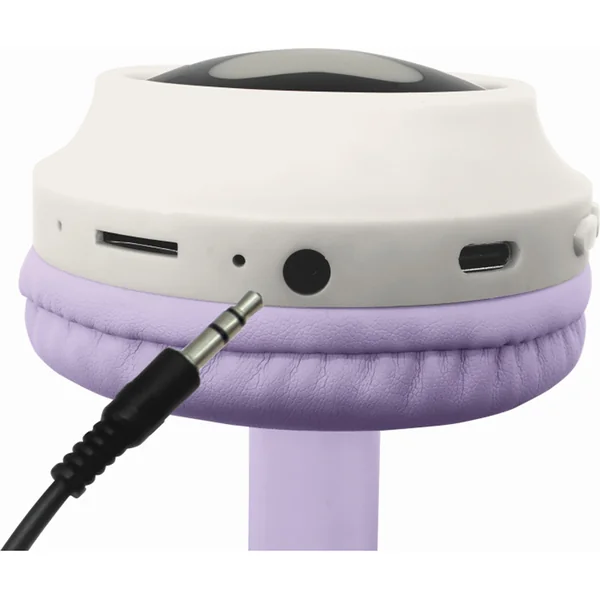 Nous vous présentons des écouteurs pratiques 2 en 1 équipés de la technologie sans fil ainsi que d’une option de connexion par câble pour une écoute ininterrompue de la musique, le visionnage de vidéos ou le jeu vidéo. Les enfants apprécieront le design mignon avec des oreilles de chat et les couleurs changeantes des lumières LED lorsque les écouteurs sont allumés. La technologie Bluetooth® 5.0 permet une connexion sans fil jusqu’à 10 m avec tous les appareils compatibles, tels que les smartphones, les tablettes, les lecteurs audio et vidéo. Une autre option pour la lecture de musique est offerte par le slot SD pour une carte mémoire MicroSD (carte non incluse). Les écouteurs peuvent facilement être commutés en mode de connexion par câble à l’aide d’un câble avec connecteur jack 3,5 mm (inclus). Ils disposent de commandes intégrées, telles que lecture/pause, boutons de volume et possibilité de changer de piste. De plus, les écouteurs sont équipés d’un microphone intégré pour recevoir des appels. Ils sont dotés d’un arceau réglable, ce qui leur permet de s’adapter parfaitement à chaque tête, et de coussinets doux pour un confort maximal. Ces écouteurs sont robustes, pliables et fabriqués à partir de matériaux légers.
