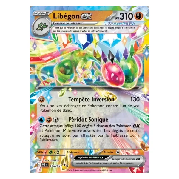 Découvrez Libégon (ssp106), une carte Pokémon de l’extension Étincelles Déferlantes, provenant du bloc Écarlate & Violet. Idéale pour compléter votre collection, cette carte Double Rare plaira autant aux collectionneurs qu’aux joueurs.