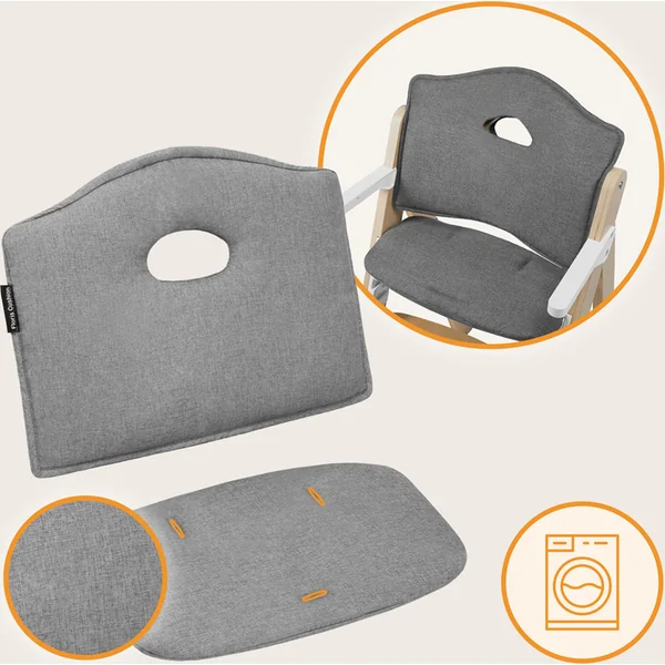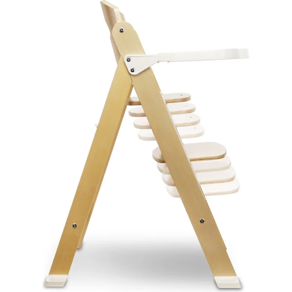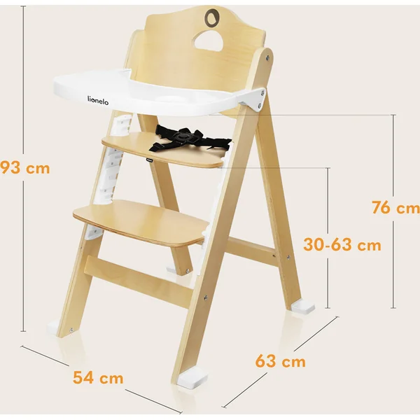 Construction en bois sécurisée : Les harnais de sécurité à cinq points garantissent une position stable pour le tout-petit et le repose-pieds amovible offre un soutien solide pour les jambes. L’enfant peut ainsi maintenir une bonne posture assise pendant le repas, ce qui influence le bon fonctionnement des intestins ainsi que le développement de l’appareil vocal. Le grand plateau offre suffisamment d’espace pour les repas – idéal pour élargir l’alimentation avec la méthode BLW. Le produit est conforme à la norme européenne EN 14988.