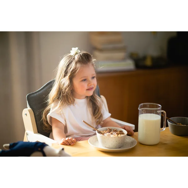 Elle convient bien pour nourrir un tout-petit et pour apprendre à manger seul. Vous pouvez également retirer le plateau et l’apporter à la table commune, ce qui a un impact positif sur la création de relations sociales.