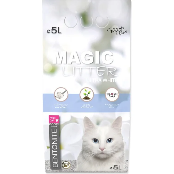 Magic Litter Bentonite ultra white sont une gamme super premium de litières qui contiennent de l’argile fine avec d’excellentes propriétés d’absorption.