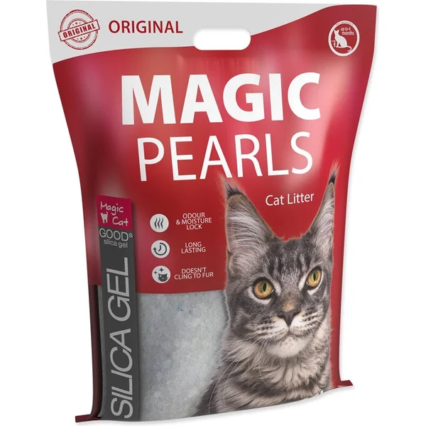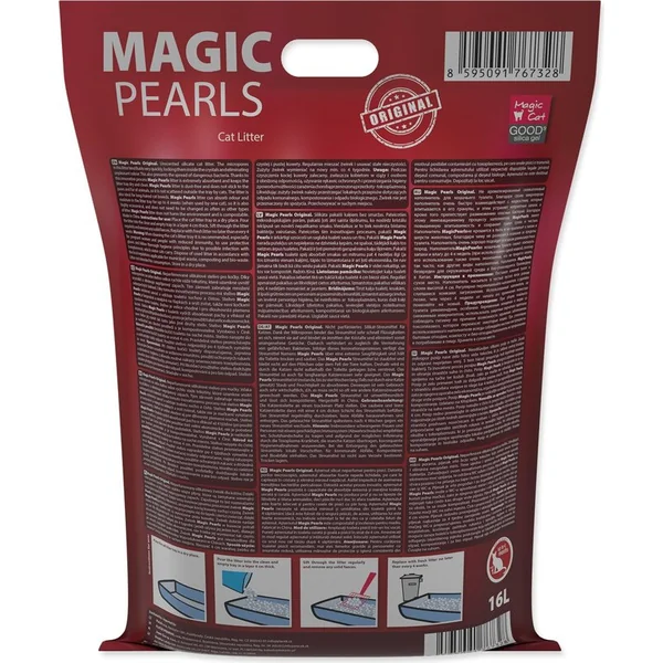 MAGIC Pearls est une révolution dans l’industrie des litières pour chats. Avec lui, vous serez en tant que client initié à une nouvelle sphère de litières. La nouvelle technologie d’adsorption est une réaction chimique qui entraîne un changement des propriétés physiques, contrairement à l’absorption utilisée par les litières ordinaires. Les granulés MAGIC Pearls adsorbent l’urine en quelques secondes et restent secs au toucher. L’odeur n’est pas seulement capturée, mais complètement éliminée. Ce processus d’adsorption détruit également les bactéries. Inégalement économique. Un seul sac de 7,6 litres de MAGIC Pearls dure 8 semaines pour votre chat. Avec d’autres litières, vous devez utiliser quatre fois plus. Il absorbe toutes les odeurs et les retient à l’intérieur. Les MAGIC Pearls ont une taille, une forme et une composition spéciales, donc ils ne collent pas au pelage du chat et ne sont pas emportés des toilettes. Vous n’aurez pas de tas sales ou de litière souillée. 100% sans poussière. Les MAGIC Pearls, créés de manière unique à partir de silice, sont plus sains pour vous et votre chat. La plupart des litières contiennent beaucoup de poussière qui peut irriter les yeux et la muqueuse nasale. C’est un silice 100% naturel et non parfumé. Naturel, non toxique et inoffensif pour l’environnement. Les chats adorent les MAGIC Pearls, qui laissent la litière propre, fraîche, sèche et sans odeur.