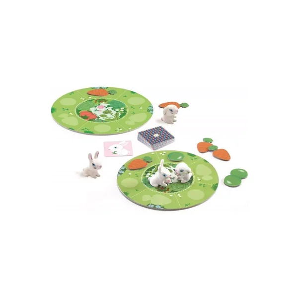 Les petites lapins sont gourmands et pour pouvoir les approcher, il faudra avant tout récolter carottes et petits pois. Mais attention au renard qui rôde. Qui sera le premier à compléter son plateau? Un premier jeu de collecte à jouer avec papa et maman.