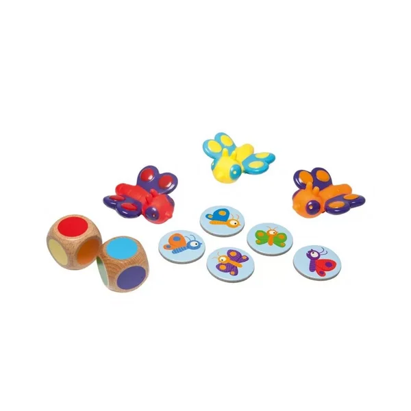 Une série de figurines en papillon bicolores sont disposées sur la table. Chaque joueur (2 à 4) doit à son tour jeter deux dés de couleur. Les deux couleurs sortantes indiquent les couleurs du papillon à attraper. Tous les joueurs essaient d’attraper ce papillon. Le premier qui réussit gagne un point. Le jeu s’arrête dès qu’un joueur a 5 points.