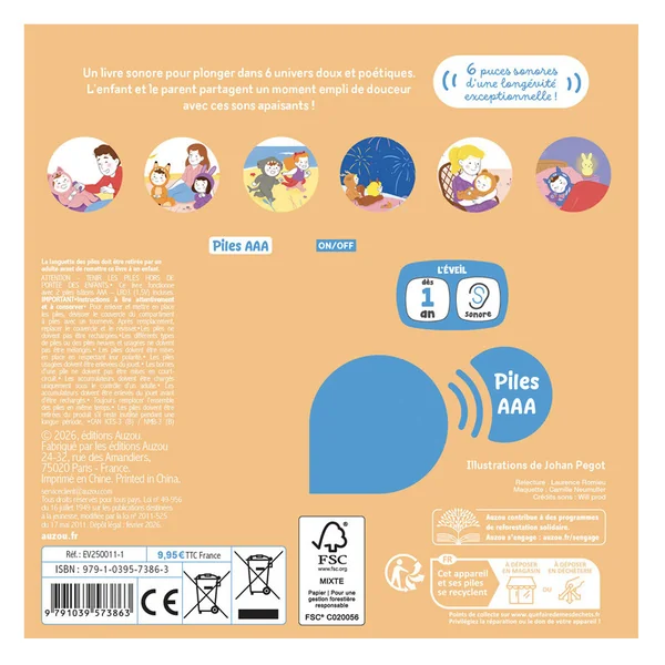 Un livre sonore plein de joie ! 6 puces sonores qui font découvrir aux tout-petits les petits bruits du quotidien qui mettent de bonne humeur, des sons empreints de