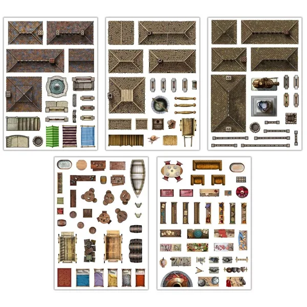 - Décorations Additionnelles – Fantasy / Dungeon Decorations : Pack de +100 autocollants statiques réutilisables pour ajouter instantanément des portes, des meubles, des trésors, des pièges et bien d’autres détails !