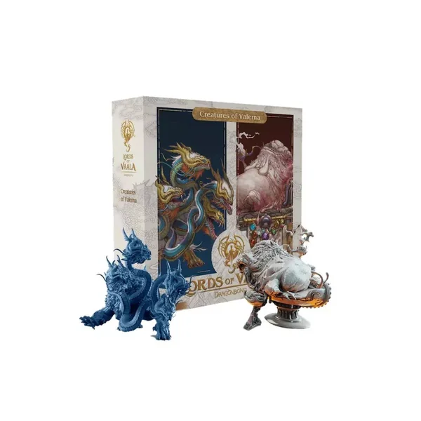 Cette boîte d’extension Lords of Vaala – Dragonbond : Creatures of Valerna contient : 6 Figurines de créatures, 6 Cartes créature, 1 Carte Événement, 1 Feuillet des règles et 1 livret de stats pour D&D 5éme édition. Contient 6 créatures adversaires avec leurs figurines et également pour chacune une fiche en français avec leurs stats pour D&D5 !
