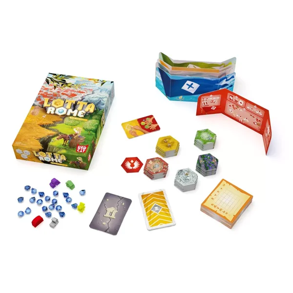 Dans Lotta Rome, les joueurs tentent de construire le domaine le plus rentable en se partageant des territoires entre eux. Les tuiles Terres sont activées grâce à des bâtiments, générant ainsi des points de victoire.