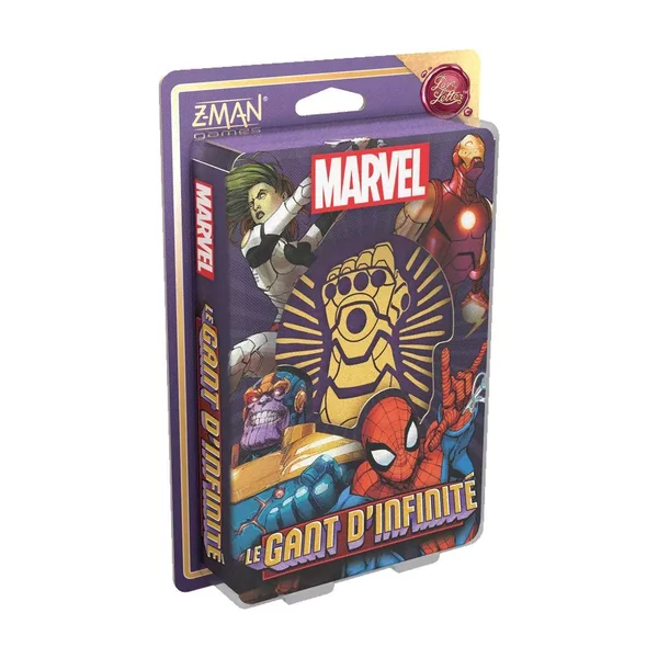 Basé sur un système élégant et accessible, Love Letter : Le Gant d’Infinité est un jeu de cartes rapide, simple et percutant ! Chaque joueur à son tour tire une carte et en joue une. L’objectif des Super Héros : réduire les points de vie de Thanos à zéro. Le but du Titan ? Terrasser ses adversaires ou trouver les 6 pierres d’Infinité dans son deck ! Le paquet de cartes de Thanos est d’ailleurs rempli de lieutenants maléfiques et prêts à tout pour vaincre, tandis que celui des joueurs qui se dressent contre eux est plein de Héros iconiques.