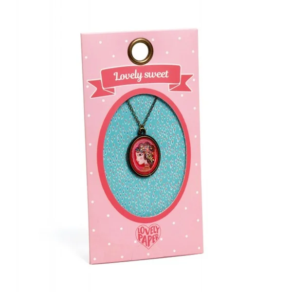 Un collier composé d’un joli médaillon en résine illustré d’une fillette sur une chaîne en métal doré, facilement ajustable grâce à son fermoir.