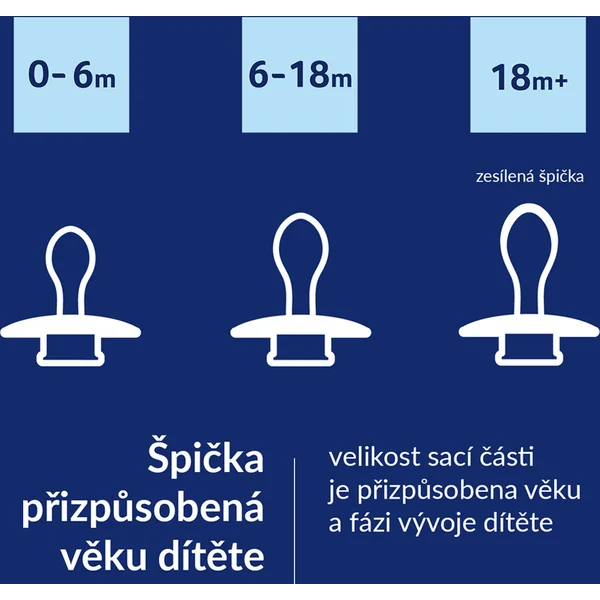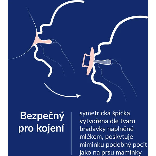 - La tétine dynamique s’étire et se rétracte grâce à une construction unique en silicone de différentes épaisseurs, selon le rythme de succion de l’enfant. Cela protège son réflexe de succion et n’a pas d’effet néfaste sur l’allaitement. La forme symétrique de la pointe s’inspire de la forme d’un mamelon rempli de lait, offrant à bébé une sensation familière similaire à celle du sein.